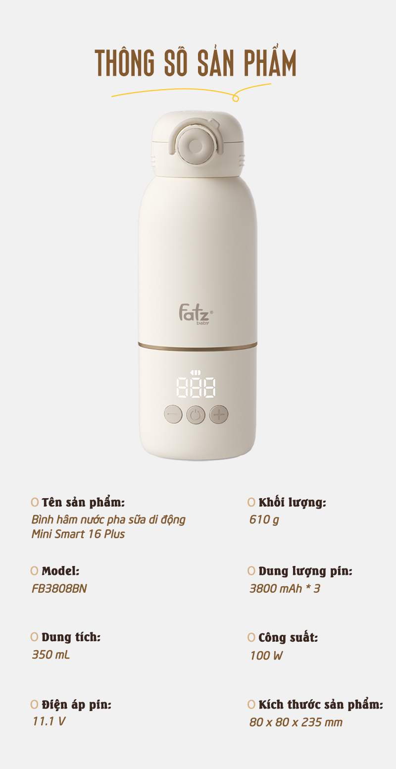 Với chất liệu thép không gỉ SUS 316 cao cấp, hệ thống hiển thị nhiệt độ chính xác và khả năng ghi nhớ nhiệt độ ưa thích, Mini Smart 16 Plus không chỉ là bình đun và giữ ấm, mà là một người bạn đồng hành đáng tin cậy cho những gia đình hiện đại, yêu sự tiện lợi và không muốn bỏ lỡ bất kỳ khoảnh khắc chăm sóc nào.