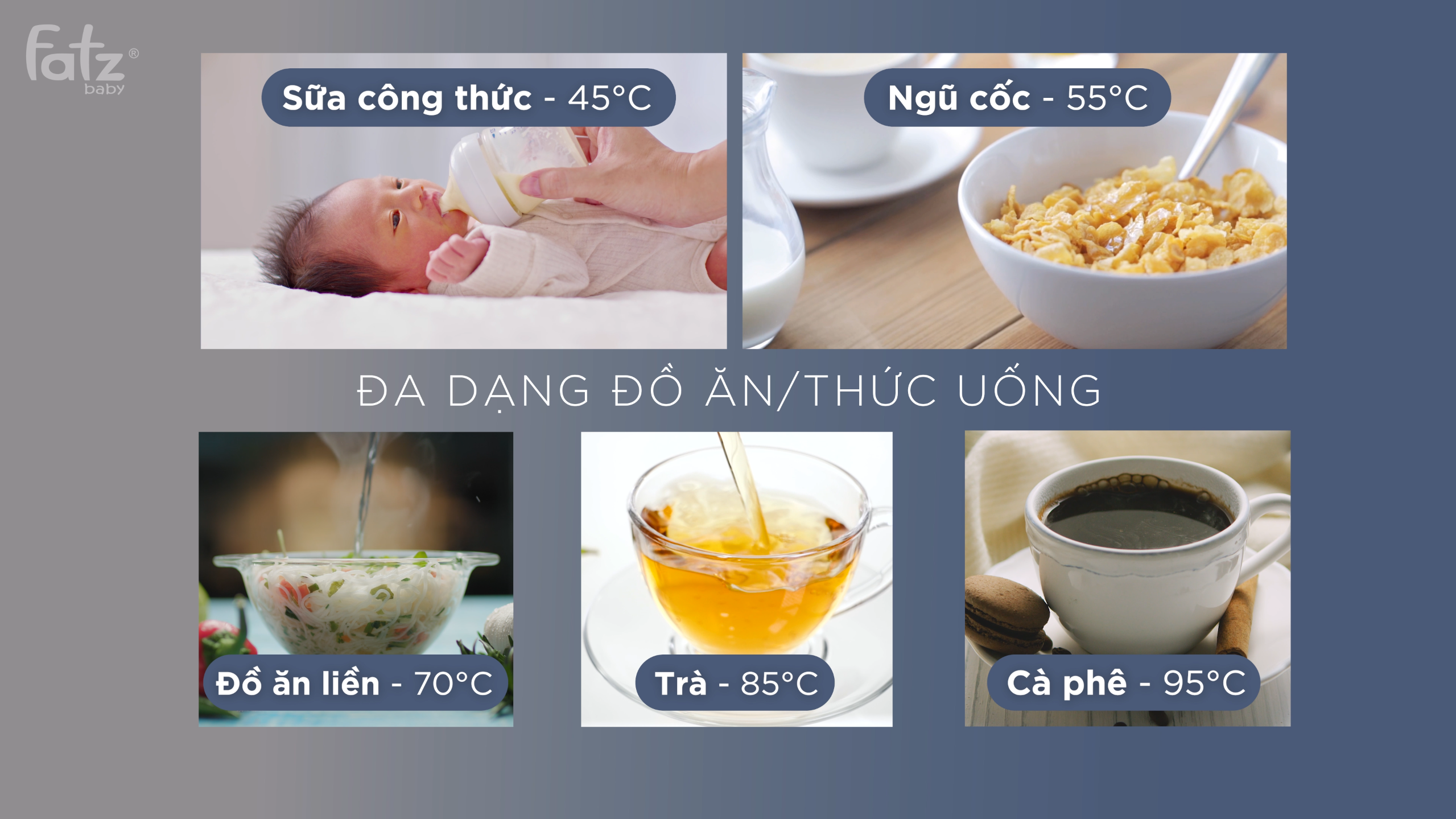 Màn hình LED hiển thị nhiệt độ thực, chế độ khóa an toàn cho trẻ em, tính năng ghi nhớ nhiệt độ tiện lợi, cùng chất liệu thép không gỉ SUS 316L an toàn cho sức khỏe bé. Tất cả được gói gọn trong một thiết kế di động, hiện đại và dễ dàng mang theo bất cứ đâu.