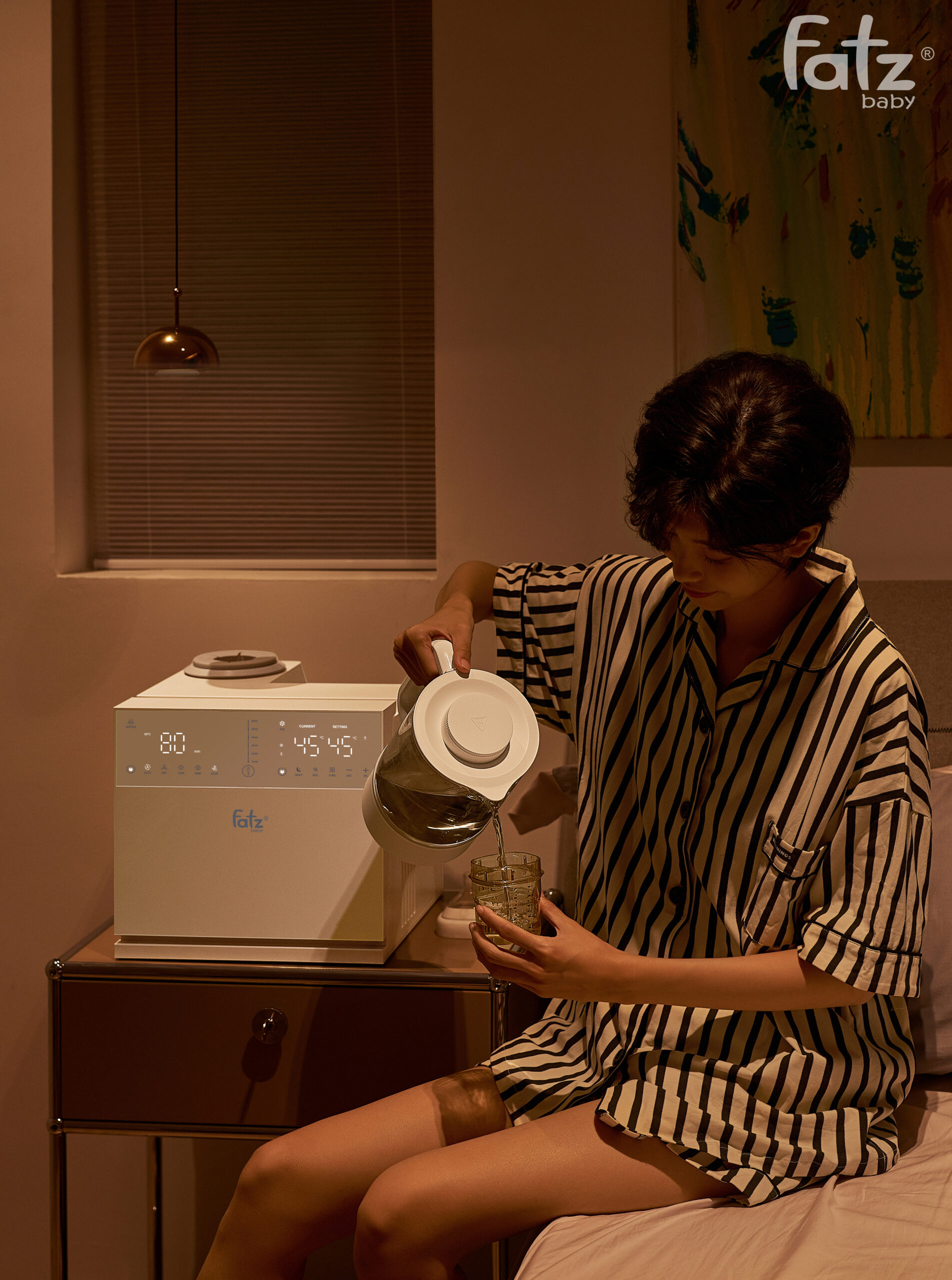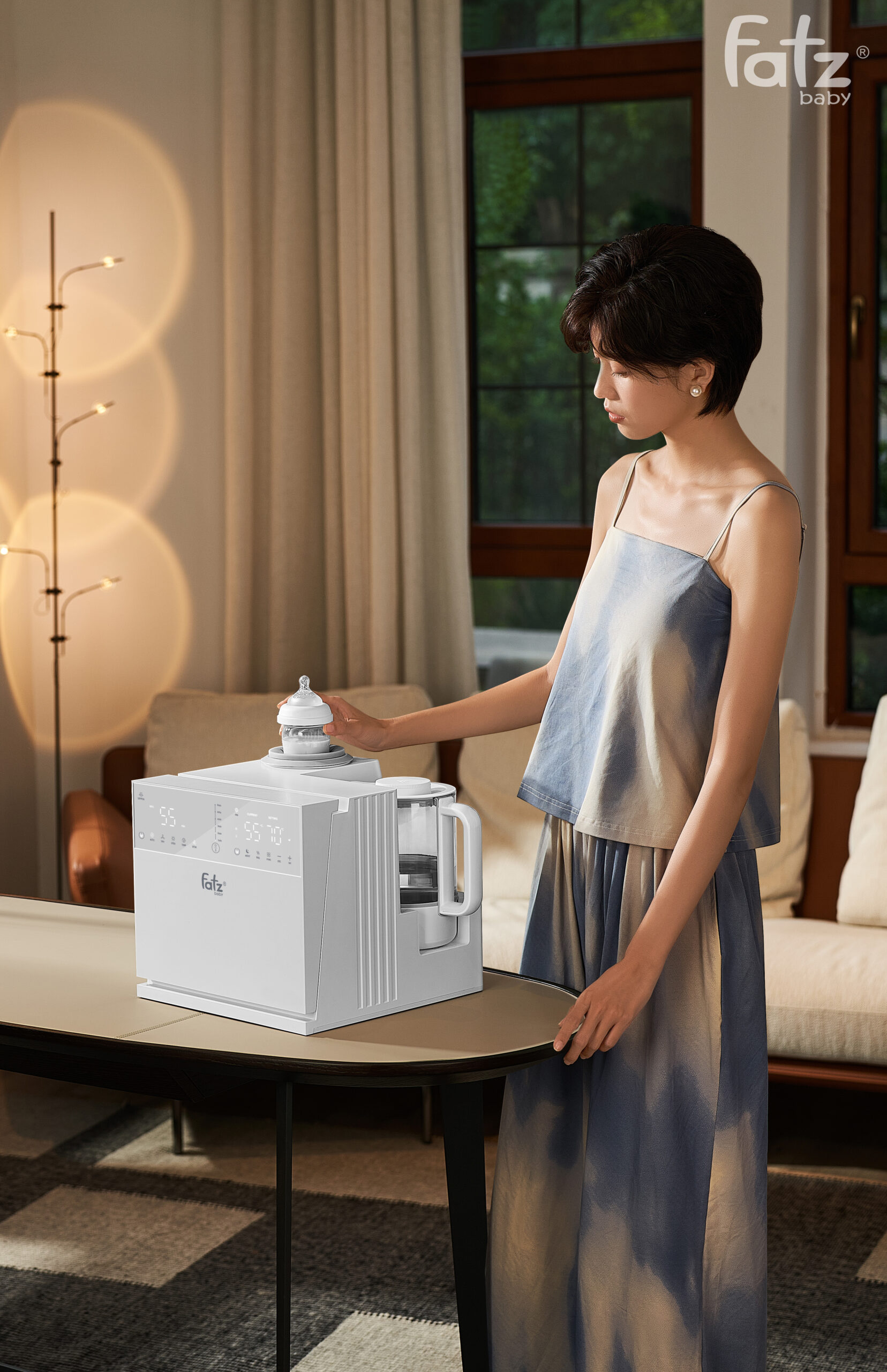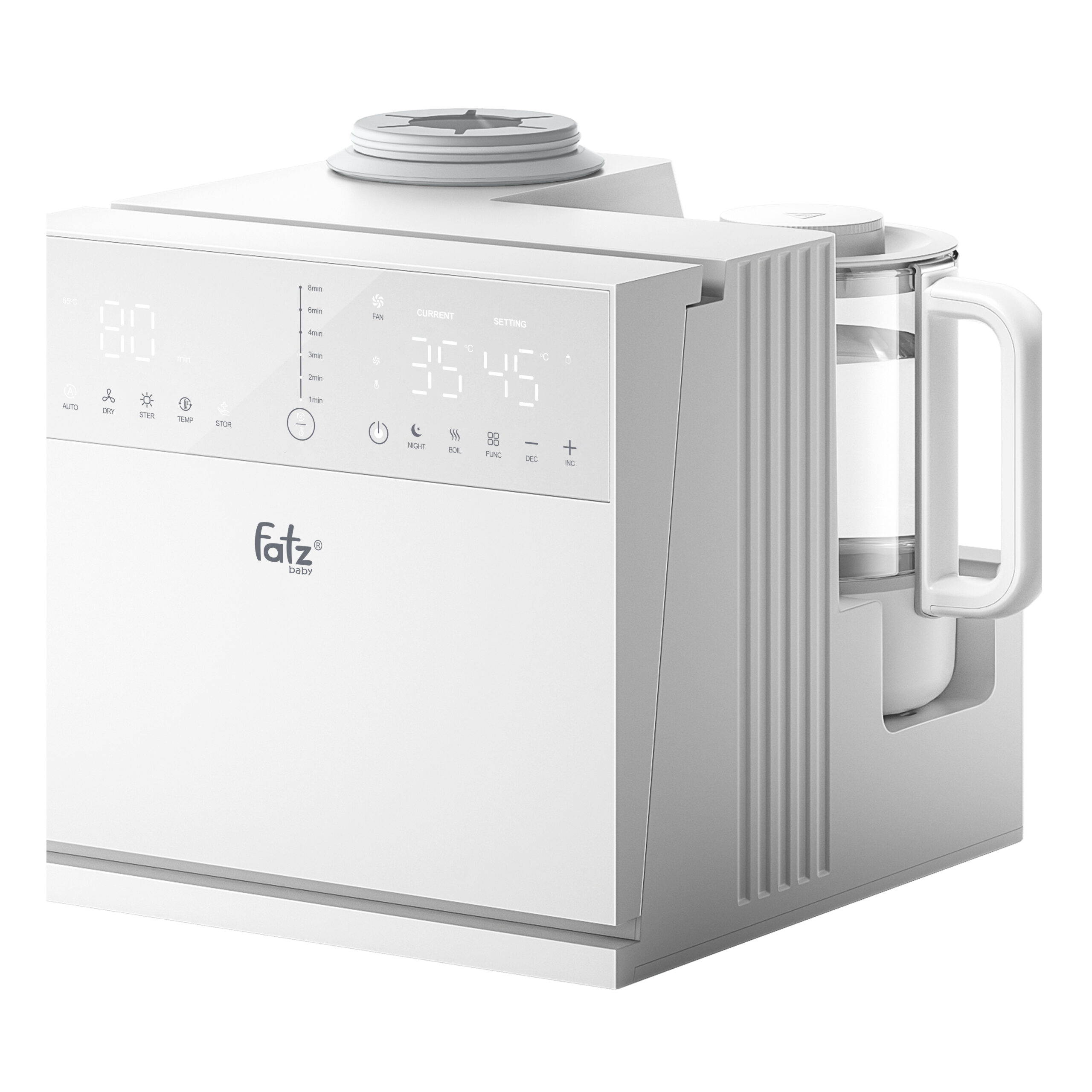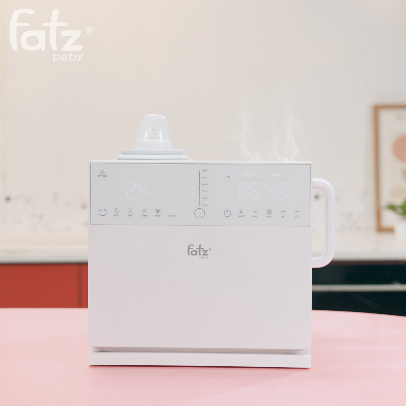 Máy thứ ba là Máy đun và hâm nước pha sữa sở hữu dung tích lớn 1300ml, đáp ứng nhu cầu sử dụng của cả gia đình. Khả năng giữ ấm liên tục lên đến 24 giờ ở nhiệt độ từ 35°C đến 95°C giúp bạn luôn có nước ấm sẵn sàng để pha sữa cho bé bất cứ lúc nào. Bên cạnh đó, máy được trang bị quạt làm mát mạnh mẽ với 2 tốc độ tùy chỉnh, giúp hạ nhiệt độ nước nhanh chóng đến mức lý tưởng để pha sữa công thức hoặc các loại đồ uống khác.