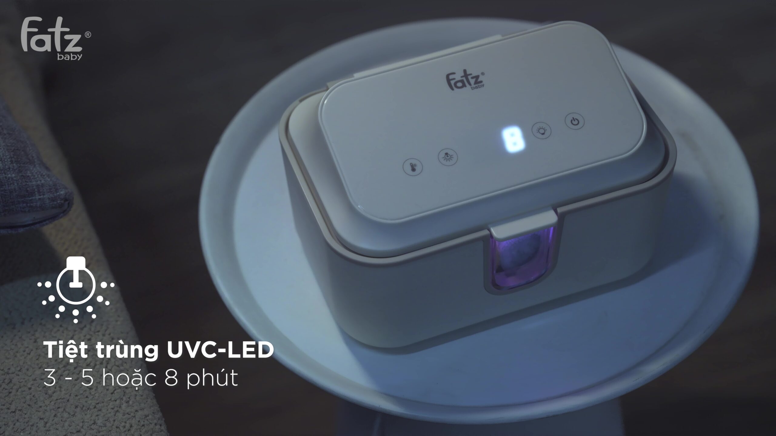 Warm 5 tích hợp công nghệ tiệt trùng UVC-LED, giúp tiêu diệt 99.9% vi khuẩn, đảm bảo khăn giấy ướt của bé luôn sạch sẽ và an toàn. Bạn có thể lựa chọn thời gian tiệt trùng phù hợp: 3, 5 hoặc 8 phút.