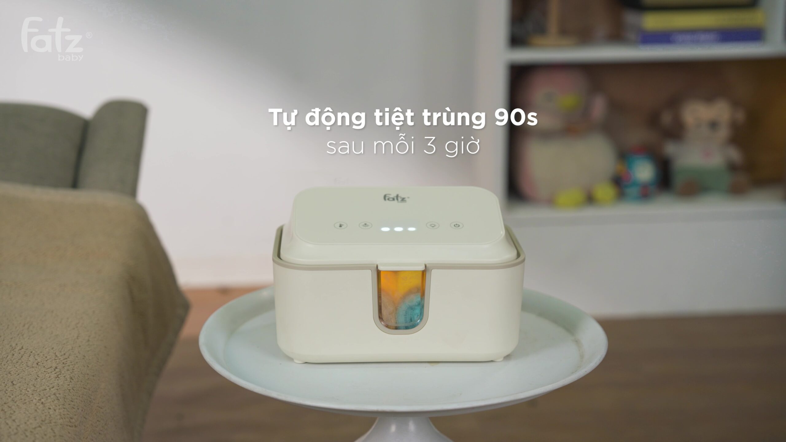 Nổi bật: Sau khi nhiệt độ của máy đạt đến mức cài đặt, đèn UV sẽ tự động kích hoạt và thực hiện quá trình tiệt trùng trong vòng 90 giây. Điều này sẽ diễn ra sau mỗi 3 giờ ở chế độ giữ ấm, giúp duy trì khăn giấy ướt luôn sạch sẽ và an toàn cho bé.